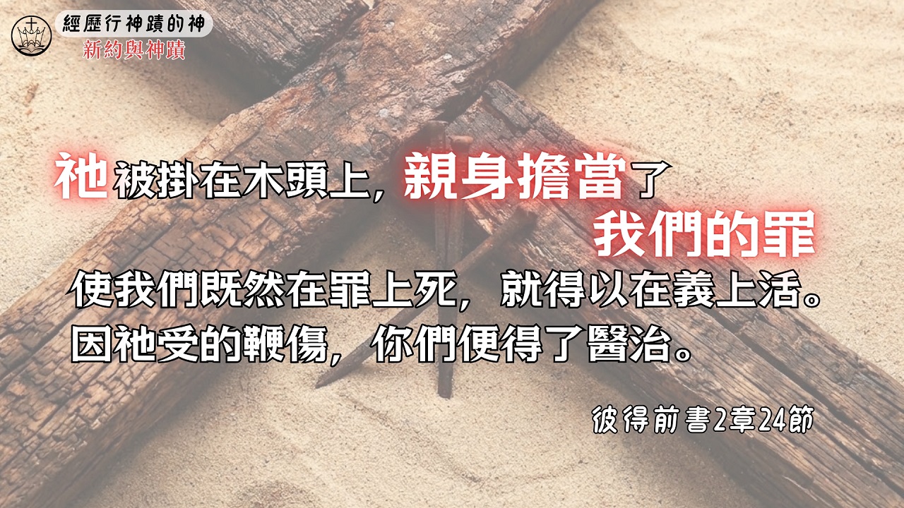 祂被掛在木頭上,親身擔當了我們的罪,使我們既然在罪上死,就得以在義上活。因祂受的鞭傷,你們便得了醫治。(彼得前書二章24節)